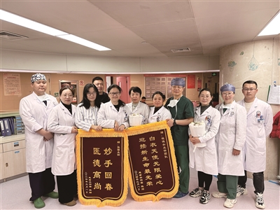 下午3时,急诊手术开始。由于患者病情危急,麻醉科副主任周海带领王鑫、戚钰主治医师,为患者重建凝血系统、维持循环稳定、改善机体内循环、行低温等脑保护措施……全力以赴做好麻醉监测保障。