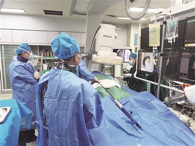 3月8日晚上八点半的徐州市中心医院导管室,医务人员按照计划有条不紊、默契配合。