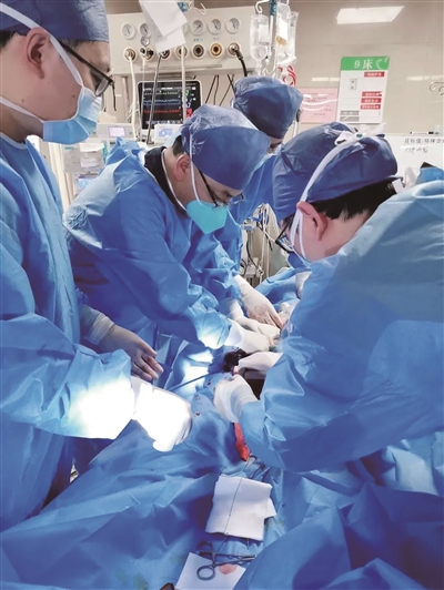 21:00,体外膜肺氧合(ECMO)团队接到会诊通知,床旁发现患者出现心源性休克,随时都有猝死风险,必须立刻行ECMO支持治疗,患者随即转入EICU。时间就是生命,急在分秒之间,“救”在生死边缘。我院麻醉科主任、ECMO团队负责人王立伟立刻带领团队快速集结,按照分工,合理有序开展救治工作。当时正值医疗高峰期,手术室团队全员满负荷运转。但所有人都自觉克服困难,奔赴响应。