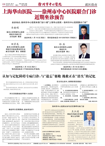 上海华山医院——徐州市中心医院联合门诊近期坐诊预告