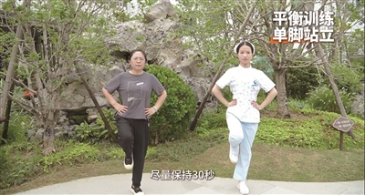 单脚站立:双脚与肩同宽站立,双手放在身体两侧或叉腰。慢慢抬起一只脚,保持平衡,尽量保持30秒,然后换另一只脚;刚开始训练时可以手扶椅子或墙壁,以保持稳定;随着平衡能力的提高,可以在锻炼时尝试闭眼,增加难度。