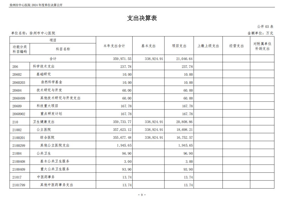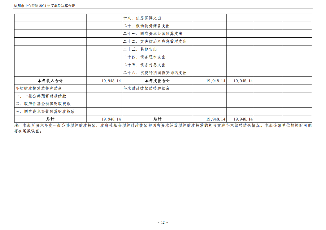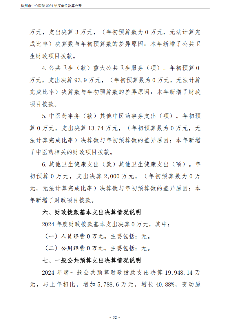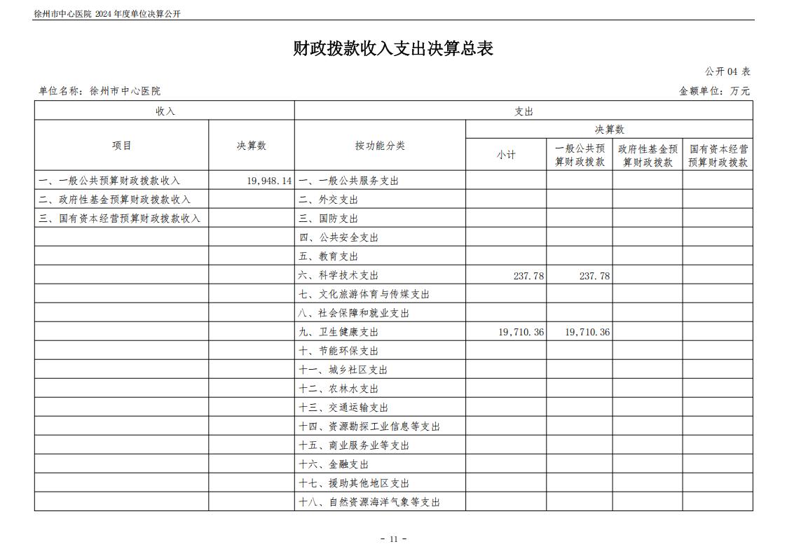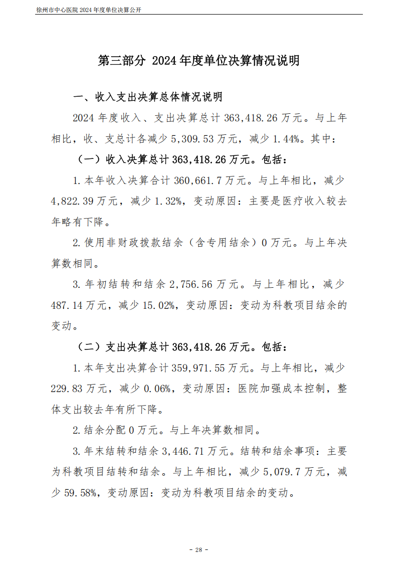 2024年度徐州市中心医院单位决算公开