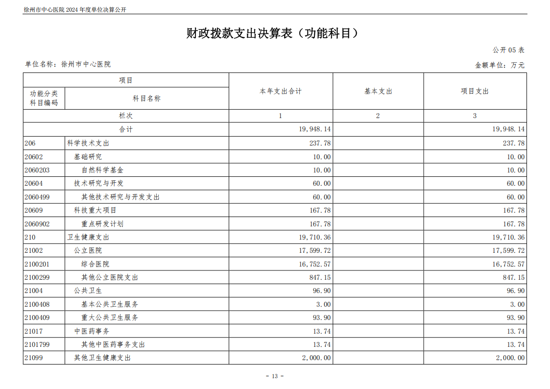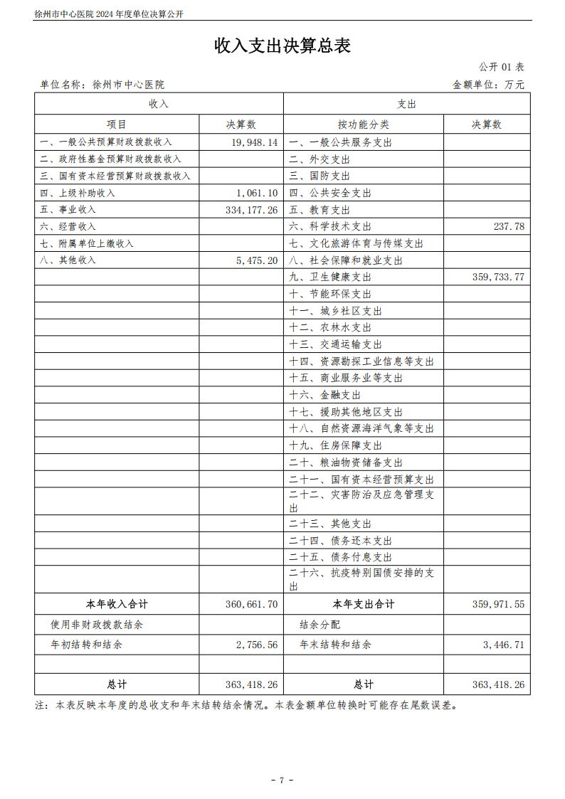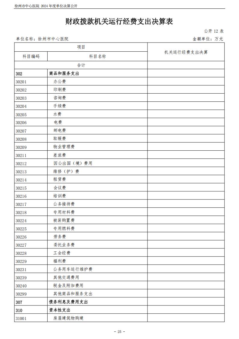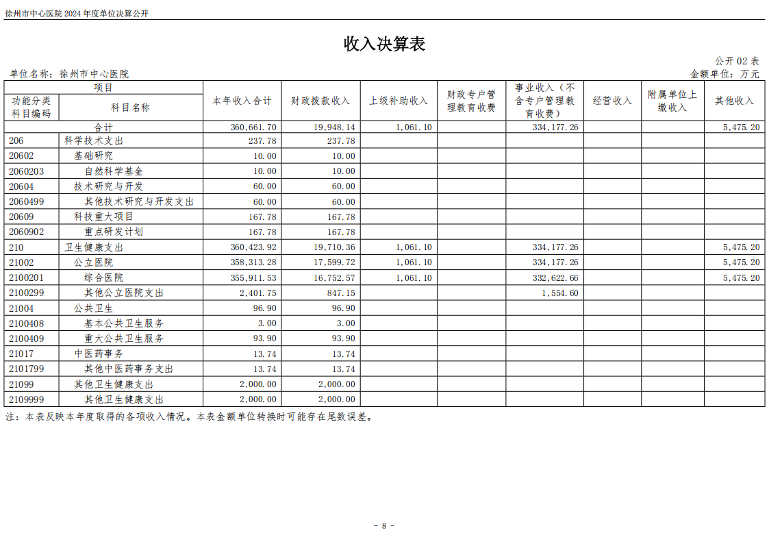 2024年度徐州市中心医院单位决算公开