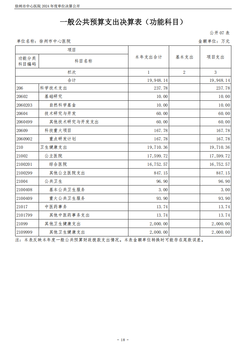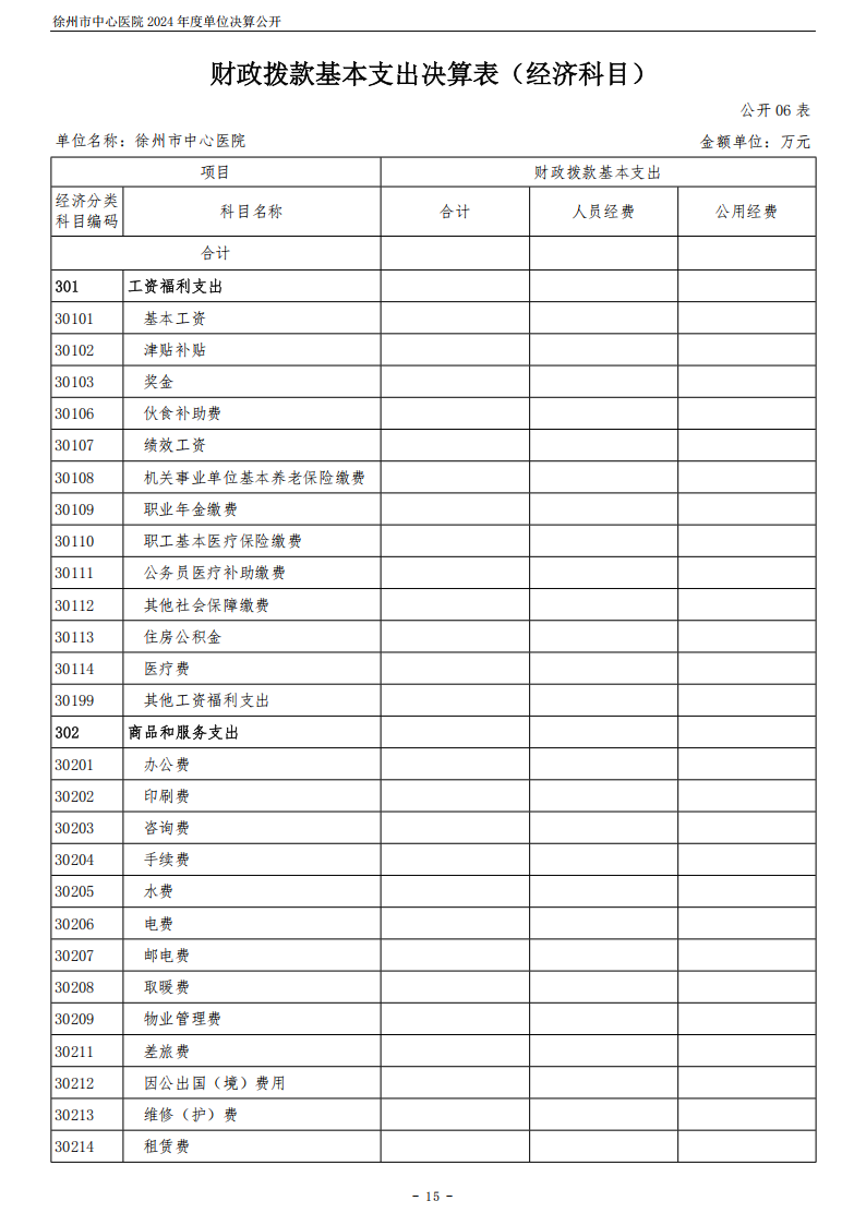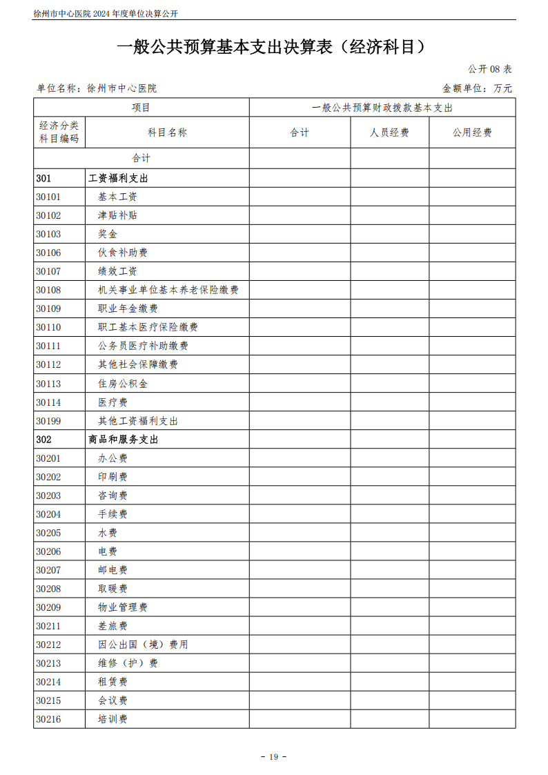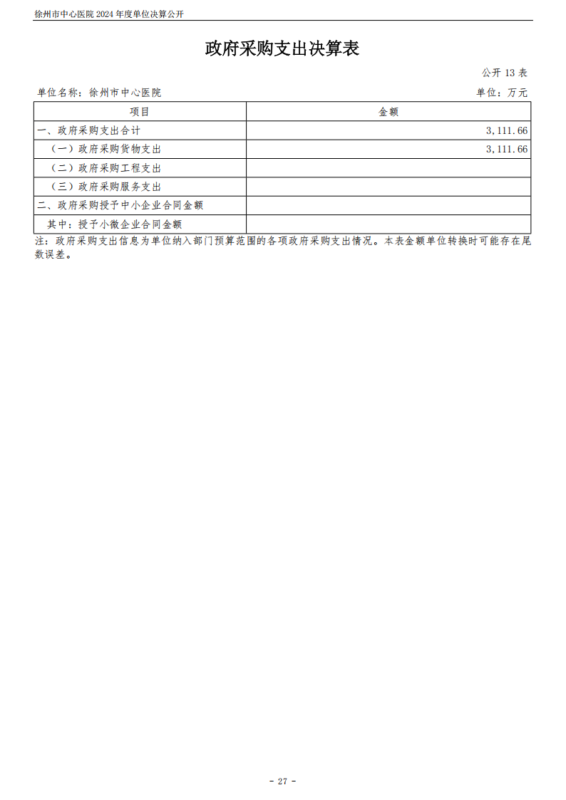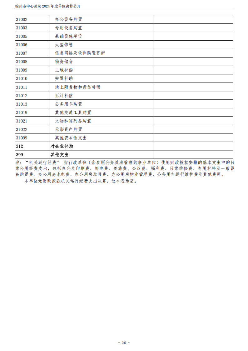 2024年度徐州市中心医院单位决算公开