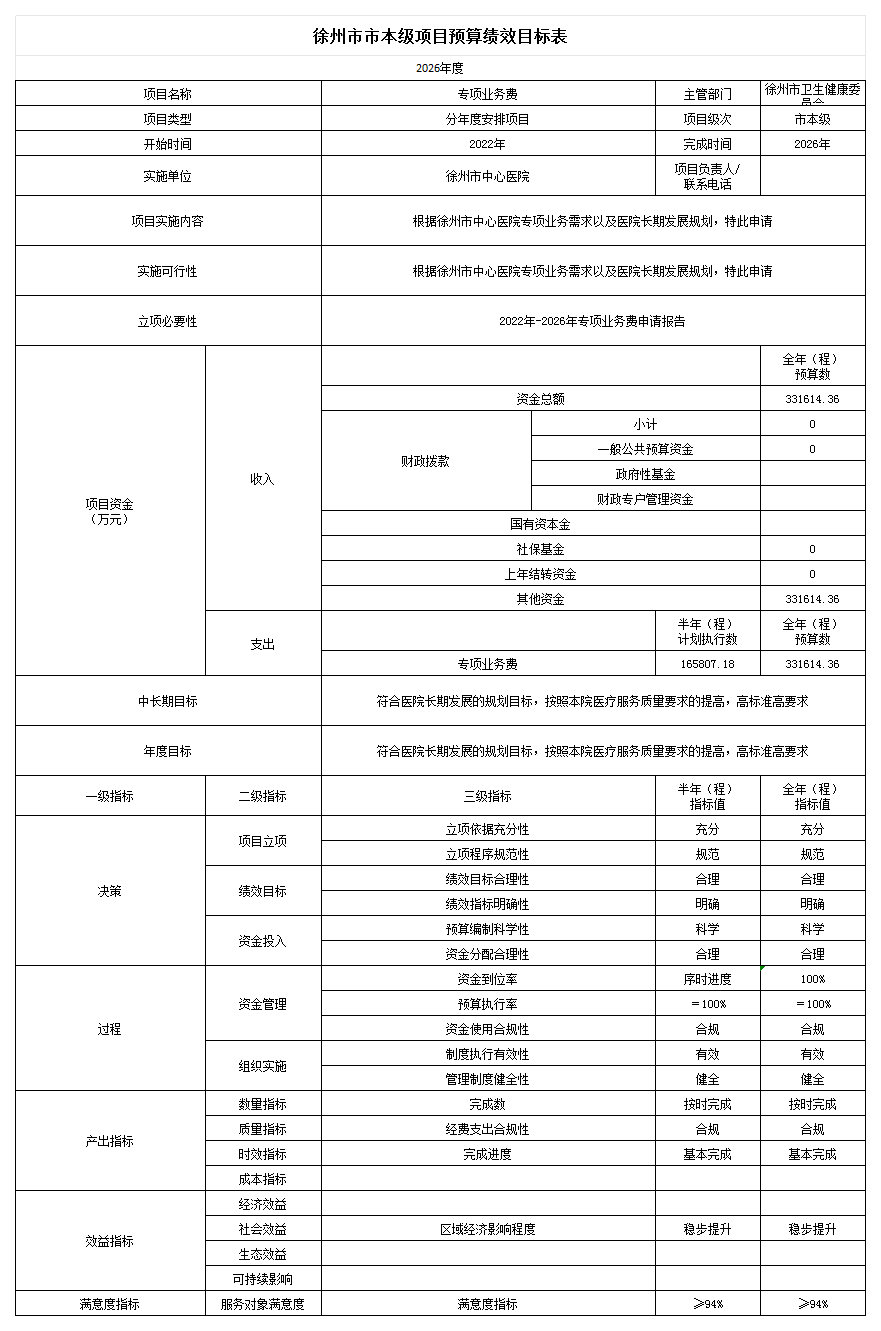 2026年度项目预算绩效目标