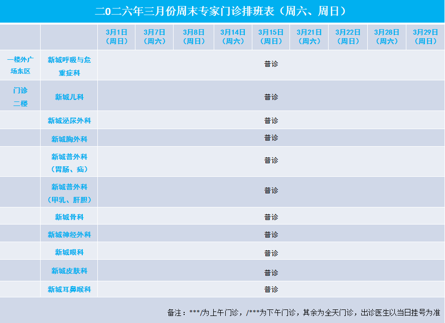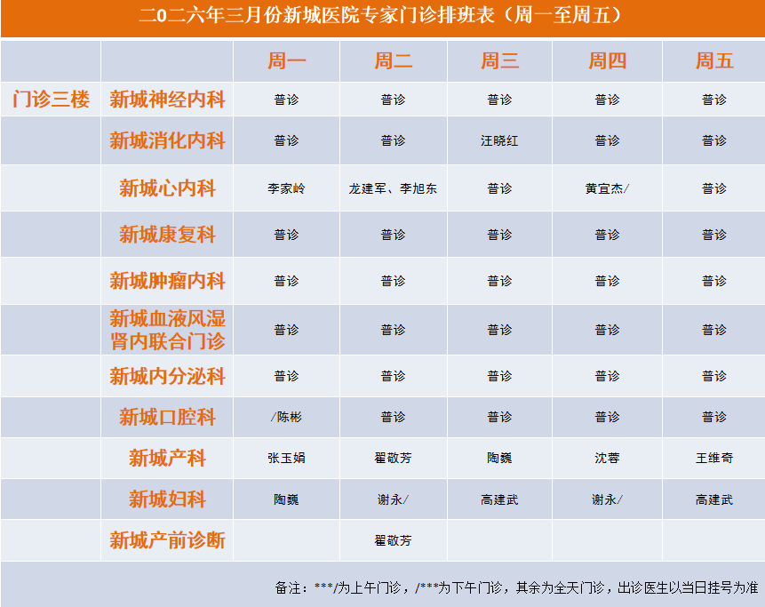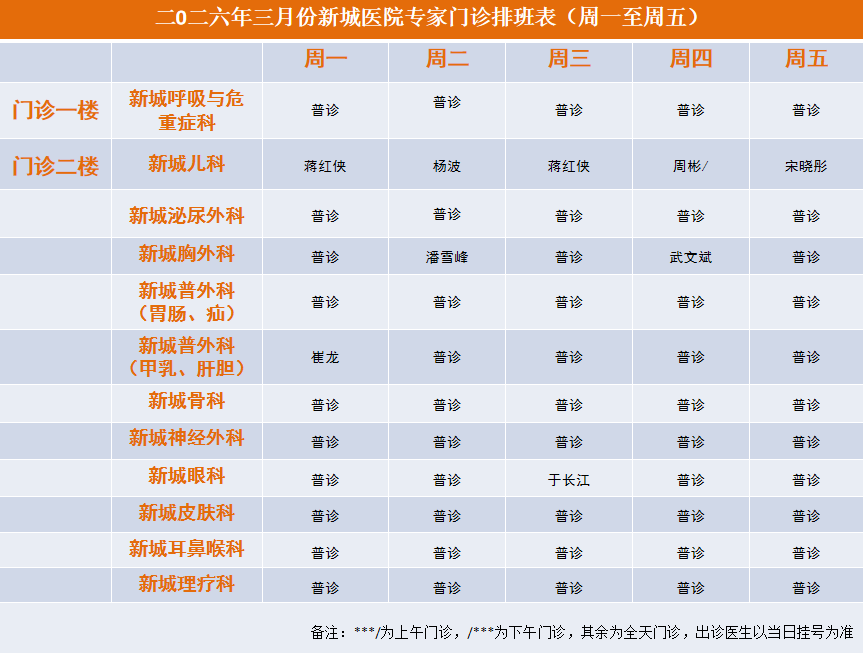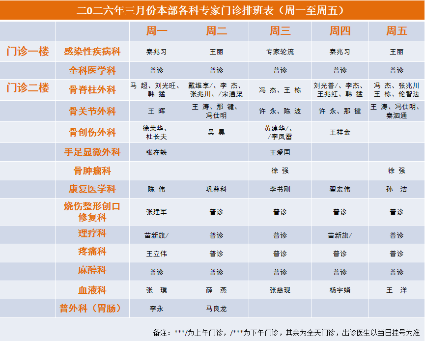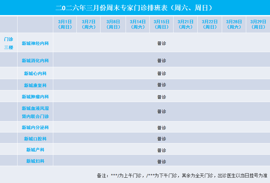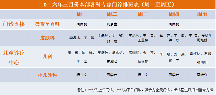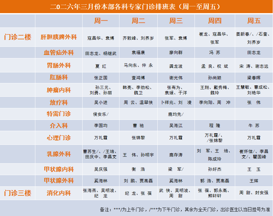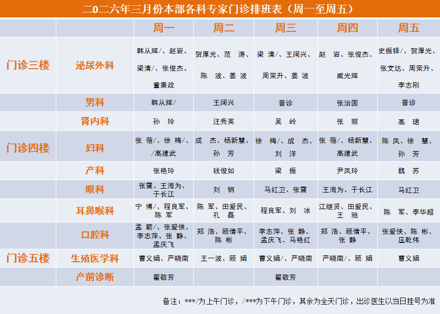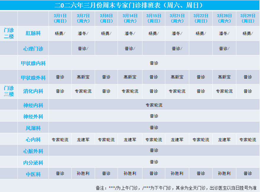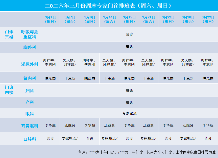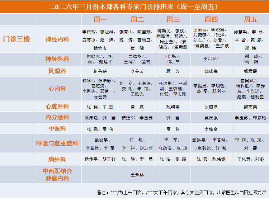 2026年3月专家门诊安排表