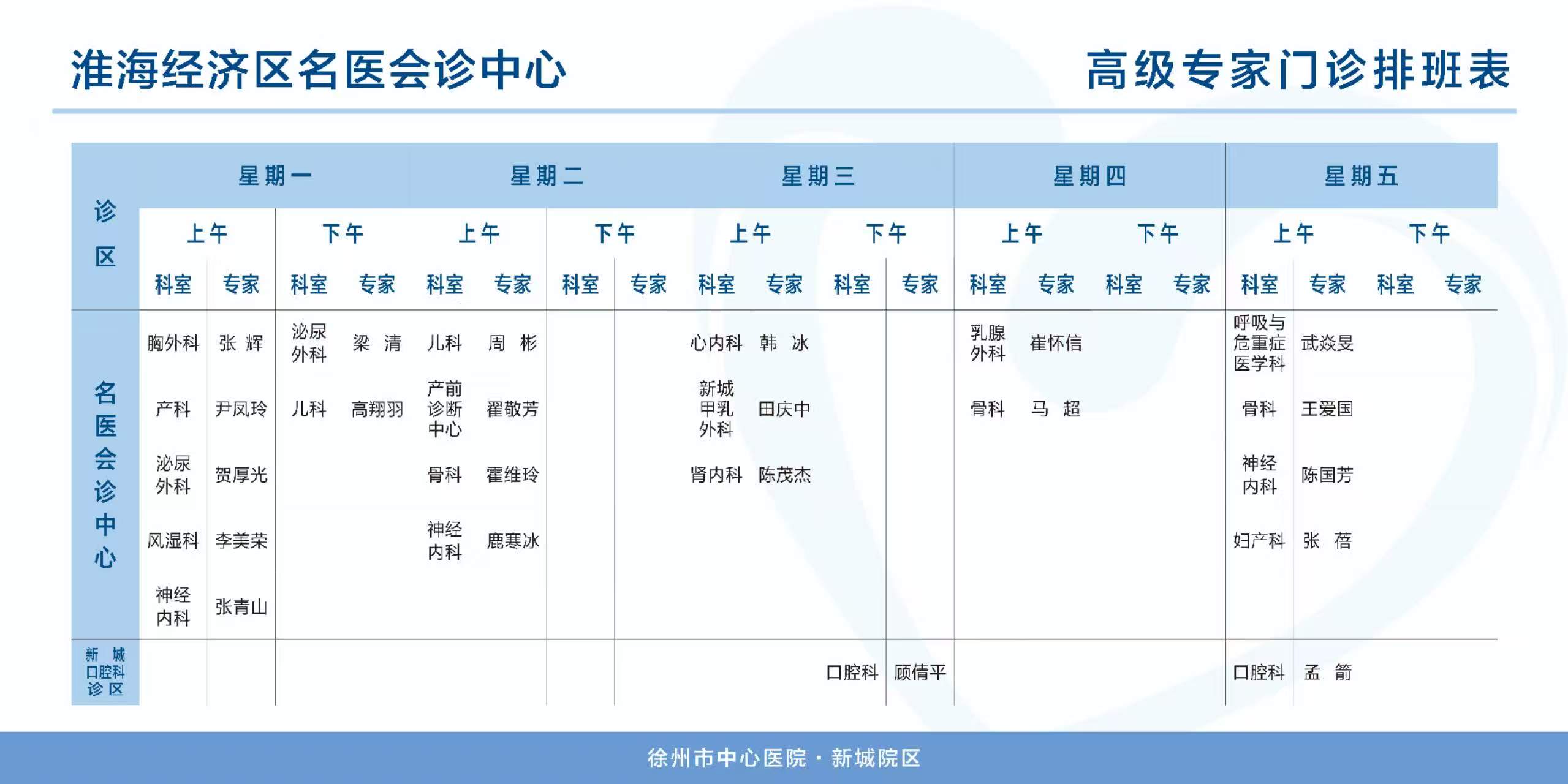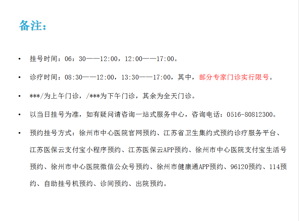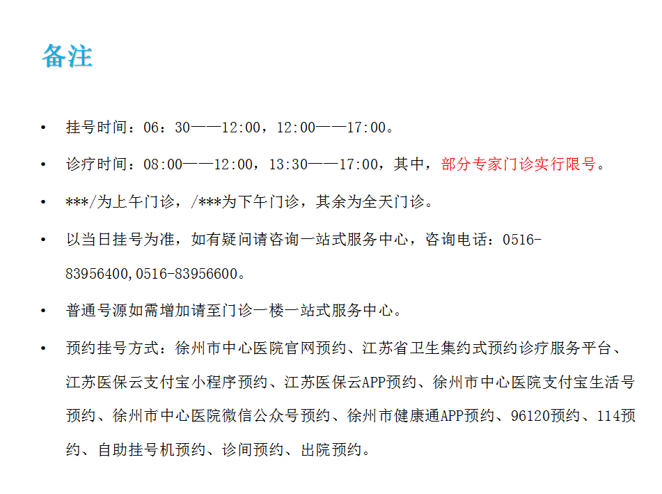 专家门诊时间表