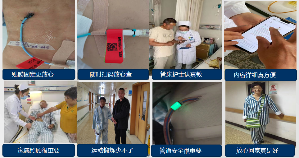 为保障出院后护理质量,科室创新实施家庭赋权模式:PTCD管路采用贴膜固定,配备带二维码的引流管标识,扫码即可获取专业护理指南;组建“PTCD小管家”微信群,医护实时答疑随访,及时解决患者居家护理难题;发放图文并茂的健康指导手册,详解管道护理、胆汁口服、饮食禁忌等关键知识,让居家护理更安心。